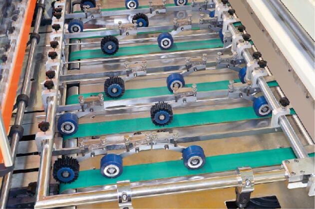 高速精密前緣送紙裝置,有效防止送紙時在紙張表面產生的刮痕,變頻控制風量調節,能適應不同瓦楞紙板的送紙要求,吸風區域可按紙張大小調節并配有大功率風機。