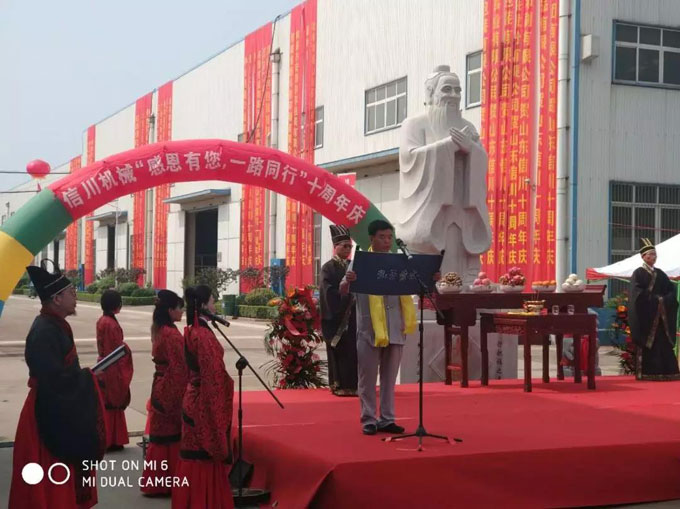 2018年5月16日,信川機械“感恩有您,一路同行”十周年慶,來自全國各地的包裝行業精英、行業領導、供應商代表、信川家人家屬代表共400余人,共同參加了祭孔、新品發布會、感恩盛典、答謝晚宴等活動,親身感受了信川企業的文化,一同見證了信川公司十年的光輝歷程和魅力。