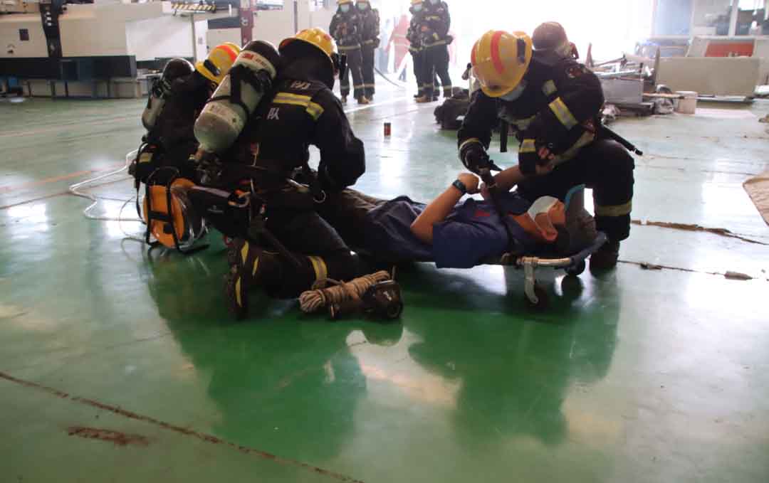 隨著警鈴響起,拉開了實操演練的序幕。通過車間內模擬火災,有人被困。從發現火情、排查火情、有序疏散、處置火情及傷員救護等流程,讓公司全體員工親身體驗到火災的嚴重危害性,認識到自救逃生技能的的重要性,同時熟練掌握了消防應急能力。