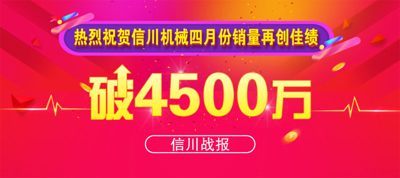 開局即決戰(zhàn),起步即沖刺喜訊傳來,信川機(jī)械2021年4月份單月銷售設(shè)備65臺(tái),銷售業(yè)績(jī)突破4500萬。突破了3月份3500萬的銷售業(yè)績(jī),實(shí)現(xiàn)第二季度開門紅!2021年開年以來信川機(jī)械銷售量節(jié)節(jié)攀升屢創(chuàng)佳績(jī)!在銷售業(yè)績(jī)不斷攀升...
