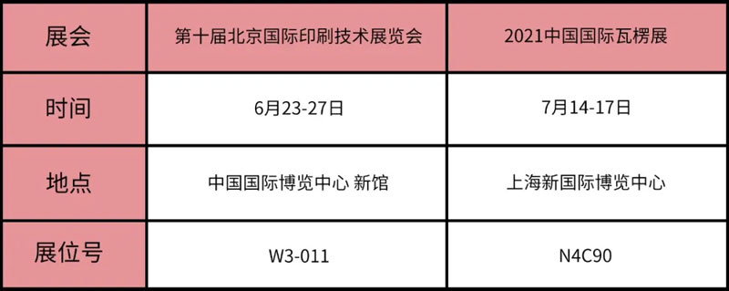 踏著奮進的腳步--信川機械即將上演展會“雙城記”,于6月23日、7月14日分別參加第十屆北京國際印刷技術展覽會、2021中國國際瓦楞展。屆時,信川將攜眾多暢銷產品亮相,歡迎新老朋友蒞臨!第十屆北京國際印刷技術展覽會北...